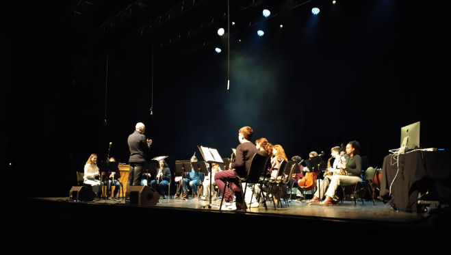 A 18h15, les élèves remontaient sur scène, devant leurs parents cette fois-ci pour jouer un concert un peu plus fourni. Jusqu'au bout, ils se sont montrés concentrés et investis ; ils ont proposé une prestation de qualité. Au programme, de la musique d'ensemble, de la MAO et la chorale du collège accompagnée par les enseignants de la Source, qui a conclu magistralement ce moment avec la célèbre chanson Je m'voyais déjà de Charles Aznavour.
