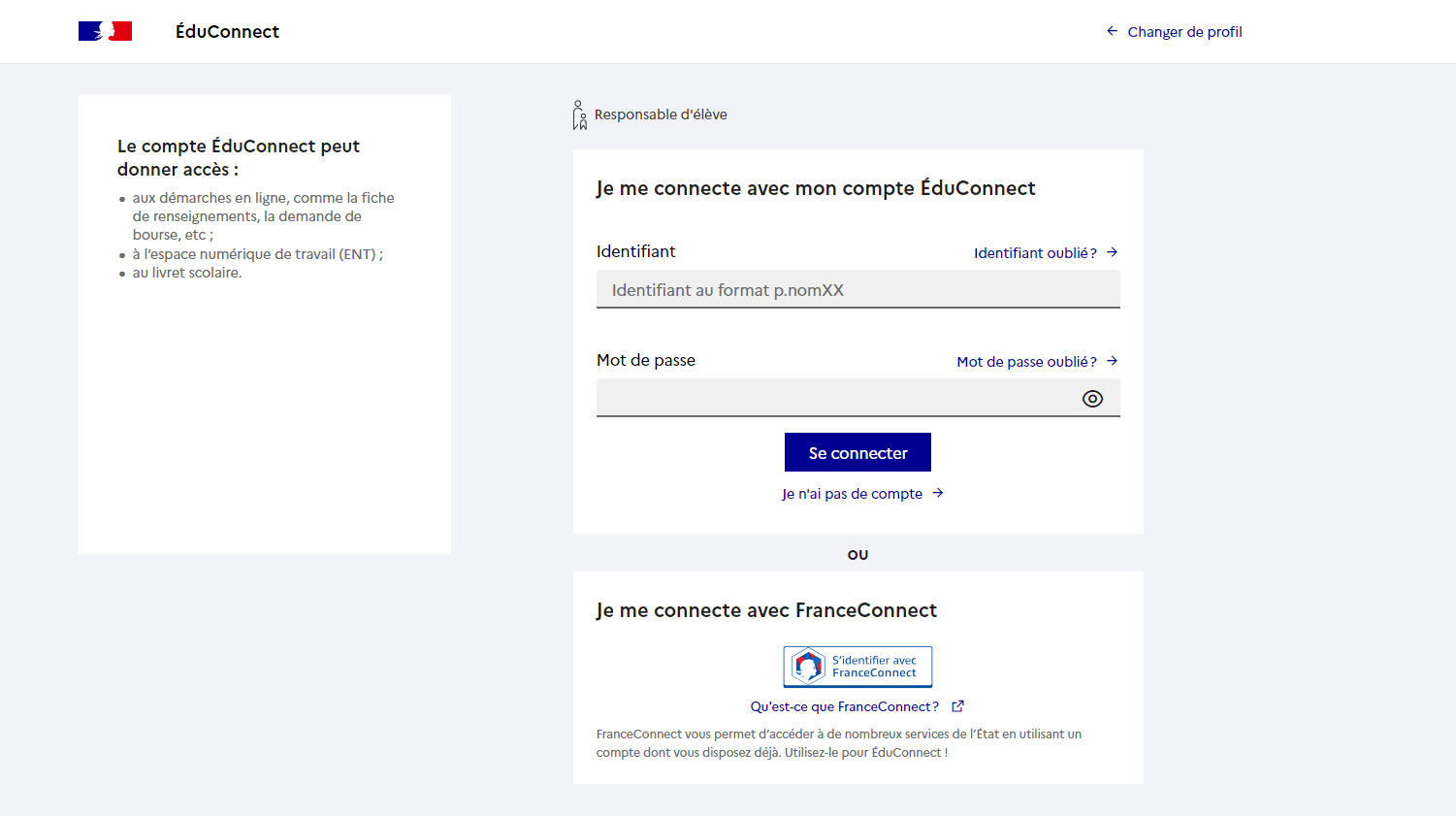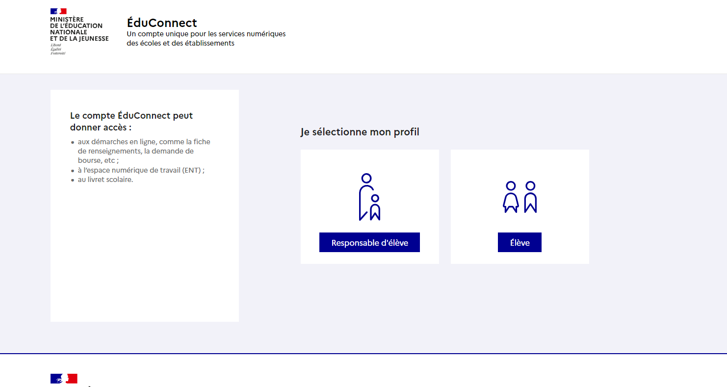 4. Sélectionner votre profil RESPONSABLE D’ELEVE (image 3),