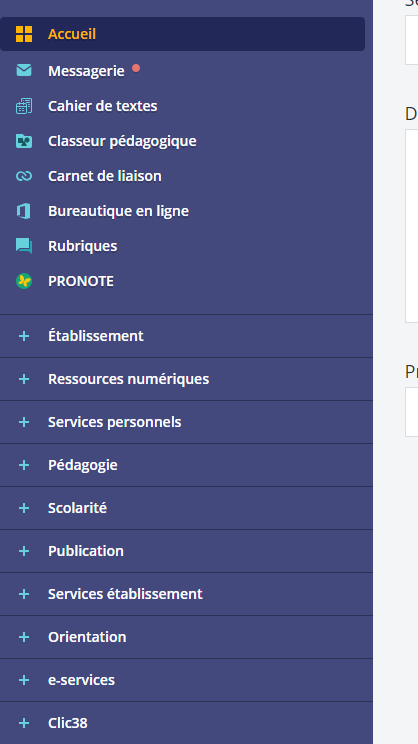 6. Se connecter à Pronote à partir du menu à gauche de l’écran (image 6) et valider la charte informatique.